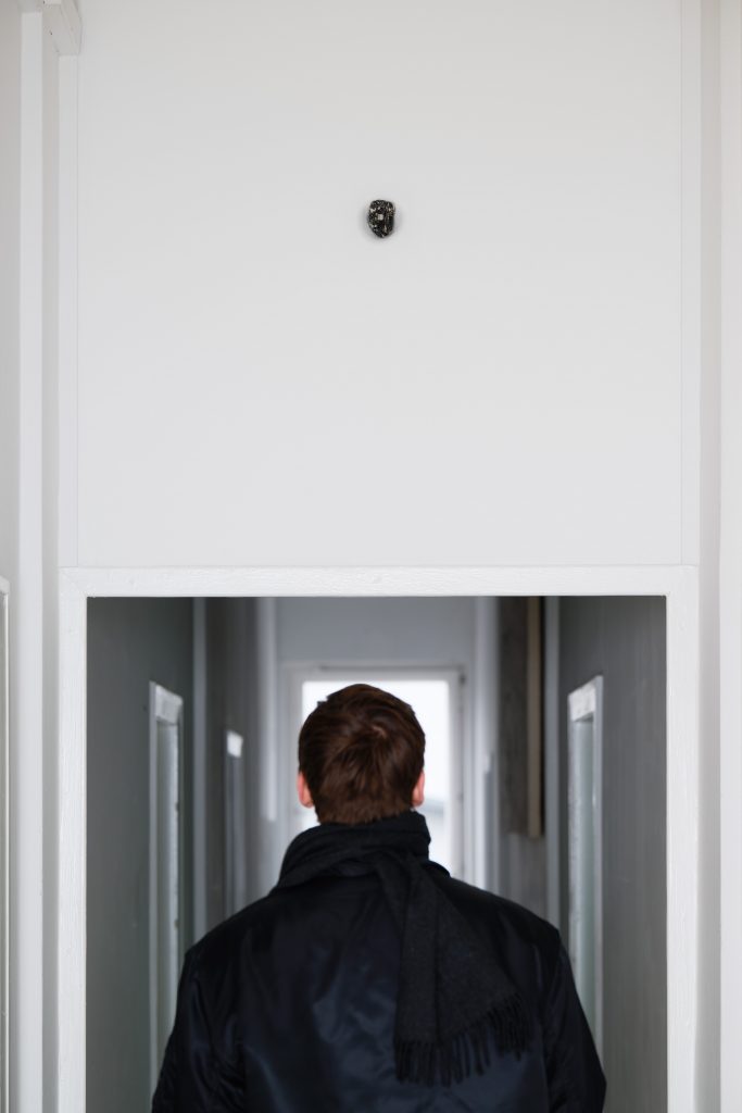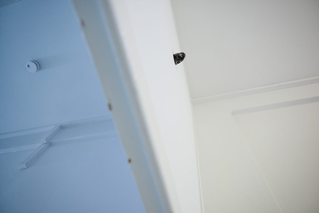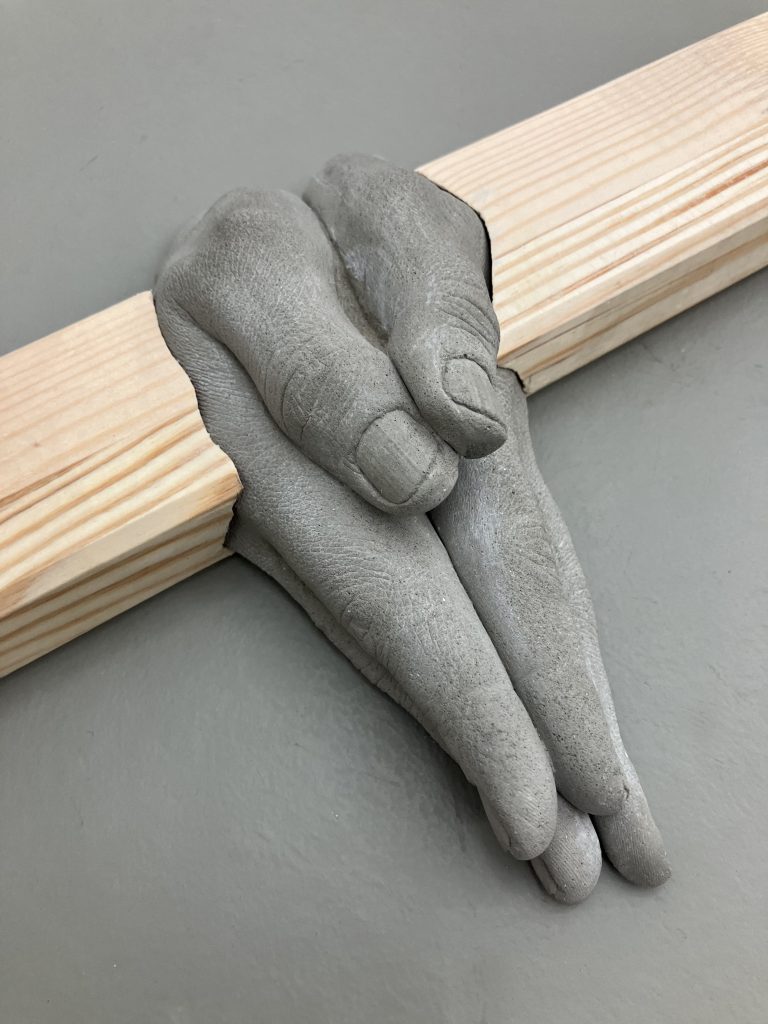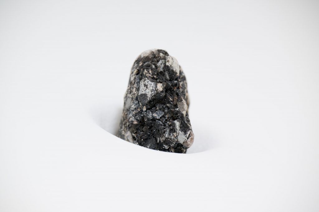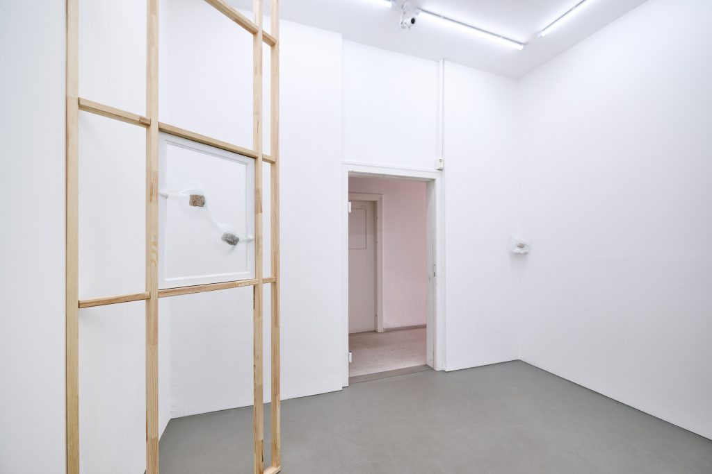 So, what do we see in this exhibition? Windows, for sure, and stones, and hands that may have picked them up from the street. And glass, of course. But what kind of glass? What kind of glass doesn’t shatter into a thousand pieces when struck by a stone, but instead bends on impact, em- bracing the stone like a protecting hand—as if it seeks to soothe the violence, to help it overcome its anger through affection, or even love?